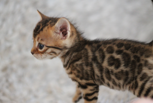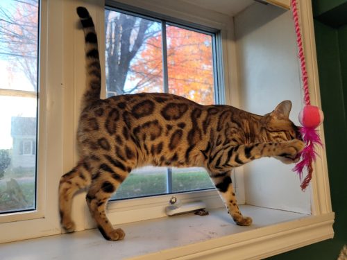 Philly est une femelle tellement attachante, elle a une personnalité douce et calme. Sa robe est BROWN avec un ton chaud et des rosettes avec beaucoup de contraste. Comme sa soeur Tokyo, elle sera maman en 2026.